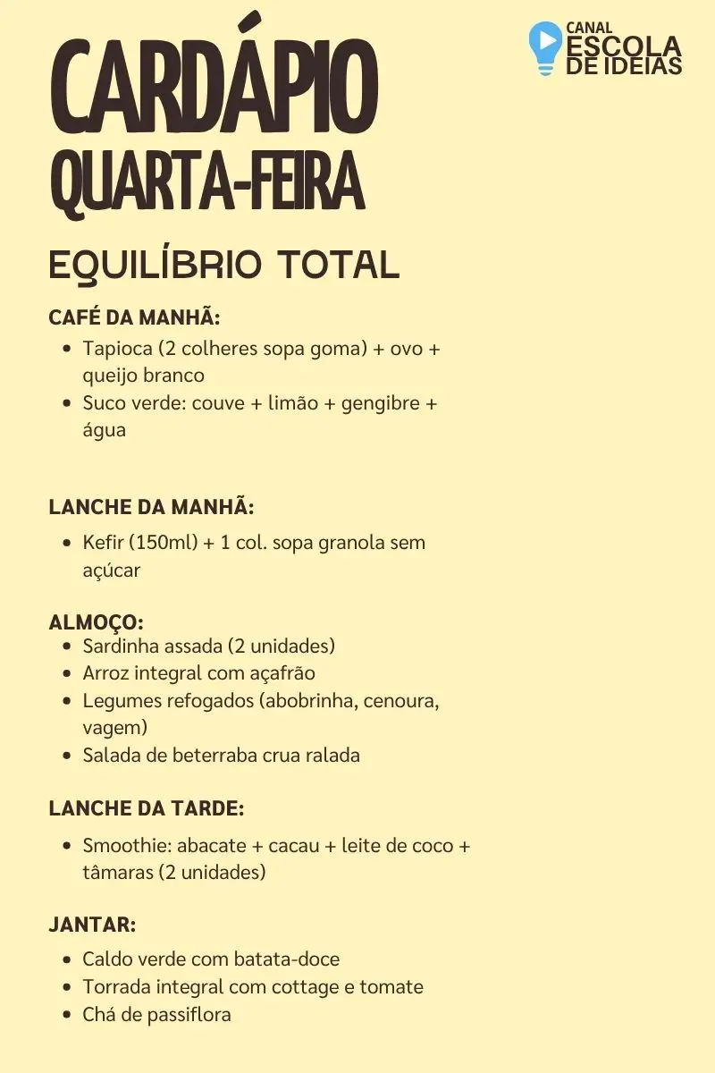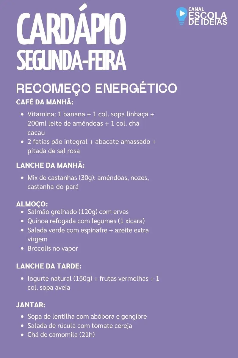 Sugestão de Cardápio Semanal Anti-Estresse para Professores